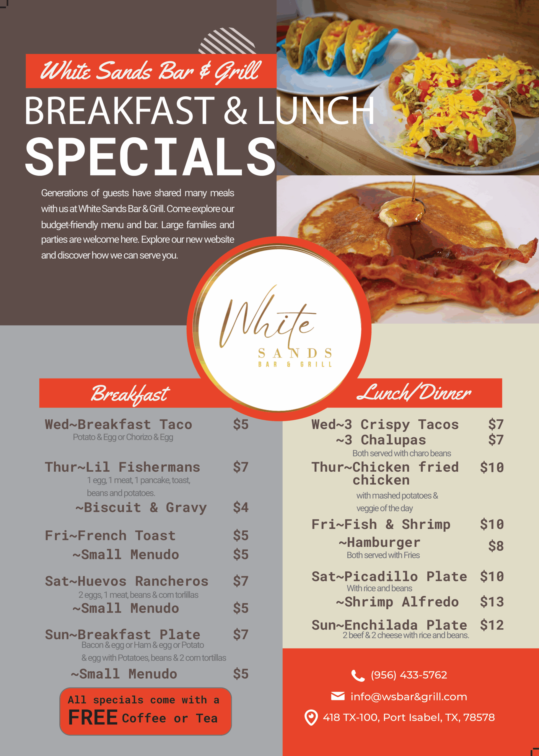White Sands offers a variety of amenities when you stay with us. We feature a bar and restaurant, boat dock, boat slips available, boat storage, fishing lights, bait shop, swimming pool, dog grooming, and hotel suites.